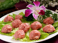 1.鮮龍蝦剁成泥蓉狀加剁成末的肥肉、雞蛋、干面粉、淀粉、姜蔥末、荸薺末及鹽、味精、胡椒粉一起調(diào)勻成餡.